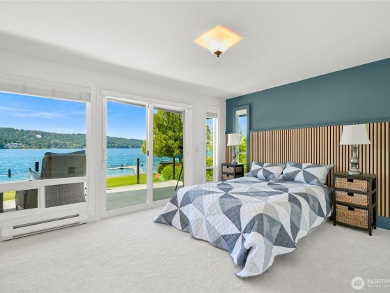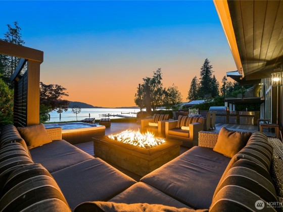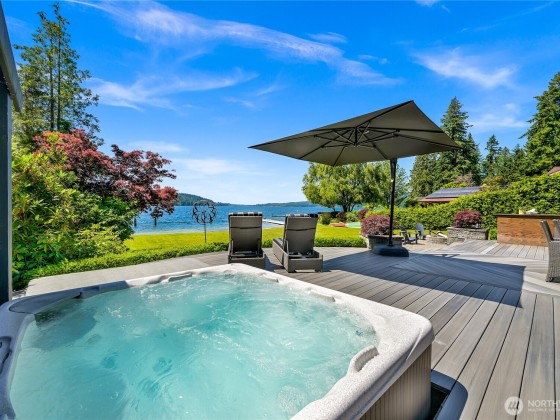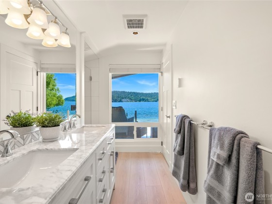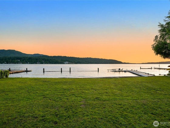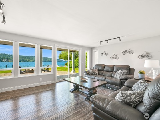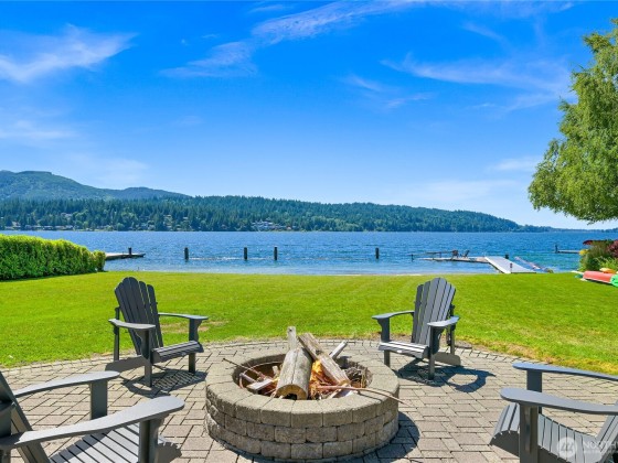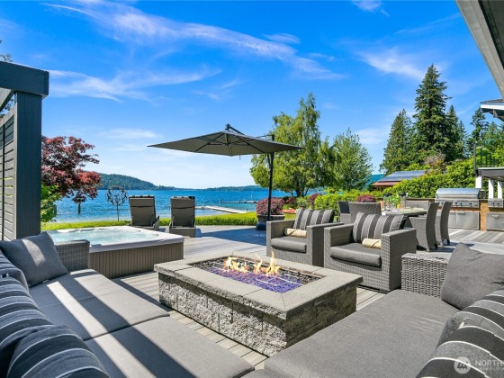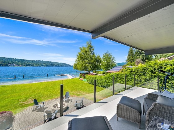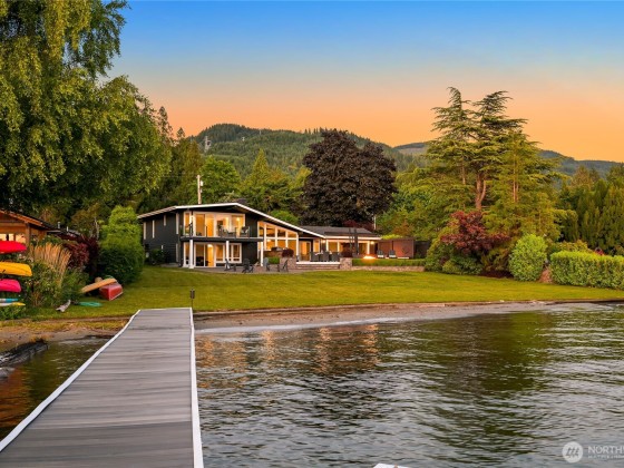 Once in a lifetime opportunity to own one of the most coveted locations on Lake Whatcom. This reimagined modern beach house offers a front-row seat to panoramic & sunset views, a rare sandy beach, and a private dock with a motorized boat lift. Tucked away on a non-through street creating total privacy & serenity, and only steps away from the Lake Whatcom Park with miles of picturesque walking trails & incredible views. Features include an open concept main floor with vaulted ceilings, great room with gas fireplace & large kitchen w/ marble counters. Don't miss the 16ft sliding door that takes you to a massive curved deck with motorized cover, hot tub, fire table, outdoor kitchen & lower patio. Just move in and enjoy lake living at its best!