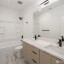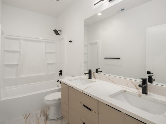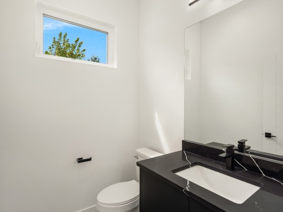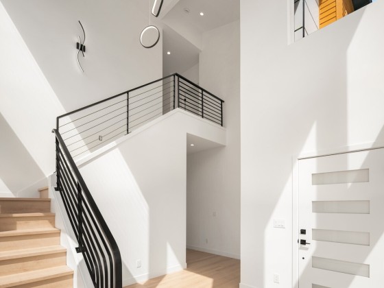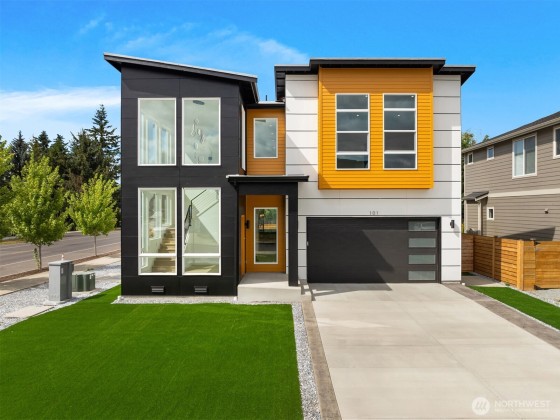 Experience the epitome of modern luxury in this Palisades new construction by Omnia Homes. A dramatic 20-foot double-height foyer, adorned with sleek modern railings and floor-to-ceiling windows, sets the stage for this stunning 4-bedroom home. The gourmet kitchen is a chef's dream, featuring a sprawling 11-foot waterfall island and sophisticated European cabinetry. Indulge in the spa-like primary suite, complete with vaulted ceilings, a walk-in closet, and a luxurious 5-piece bath showcasing a freestanding black soaking tub. Outdoor living is perfected with a fully fenced turf front and backyard oasis. Smart home technology, premium GE Gallery appliances, and exquisite matte black fixtures complete this unparalleled residence.