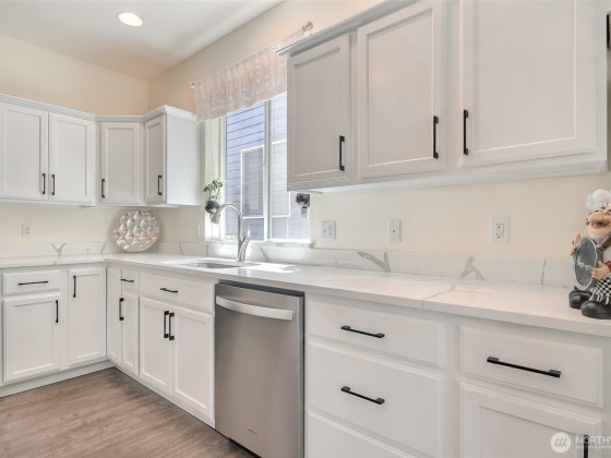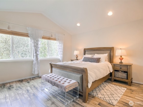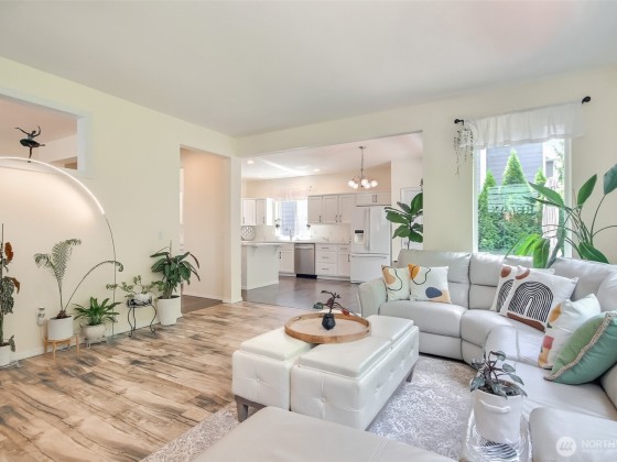 Location! Near Lake Geneva & Lake Killarney. Beautifully maintained property in the Collingtree Park community! Kitchen upgraded w/quartz countertops, wall of white cabinets & newer appliances(&new DW), New hdwd look vinyl plank floorings throughout, Open spindle stair rail(white), Den/office&1/2 bath on main floor, Picture windows in Family rm & Bay window in formal dining rm. Skylight, 4bdrms, Bonus rm & 2 full baths in 2nd level. Vaulted ceiling in Primary suite W/ updated 5pcs bath & walk-in closet, Family rm w/gas fp, pantry & breakfast nook. Updated lightning & Chandeliers. Spacious patio, Hydrangea garden,view of nature area& seasonal creek. Community w/peaceful view of Lake Geneva! Excellent location w/great I-5 Hwy 18 & 167 access!
