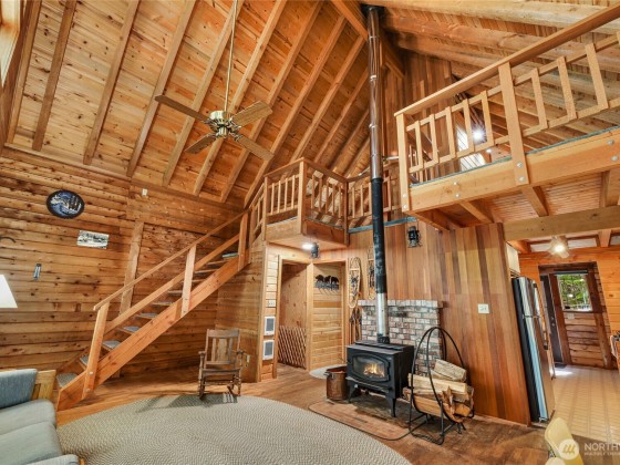 Escape to the mountains in true cabin style in this Lindal Cedar home located on a quiet private road tucked away in the heart of Snoqualmie Pass. Surrounded by trees, mountains and with Coal Creek running through the property, you will be living the mountain life to its fullest. Get cozy and dry the ski gear by the wood stove after a long day of skiing/ski touring. Spend your summers relaxing at your own private riverfront listening to Coal Creek flow by. 704 sq/ft of additional space on the lower level for gear, storage, shop, or convert to finished square footage? Two tax parcels, one great price.