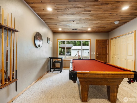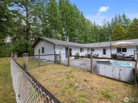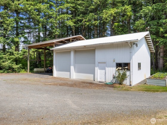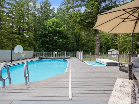 This single-level home is situated on 2.39 acres in North County, set back from the road and surrounded by evergreens, offering a very private setting. The rooms are spacious, and the fourth bedroom is used as an office, having previously served as a hair salon. The family room, equipped with a pool table, is ideal for entertaining. Outside, you'll find a swimming pool (complete with a durable cover), a hot tub, and a pool house that includes a 3/4 bath. There is also a large two-bay shop located between the house and the road with a tall two-vehicle carport for RVs at the north end of the property. Additionally, there’s a raised garden at the south end and a chicken coop/goat shed in the backfield.