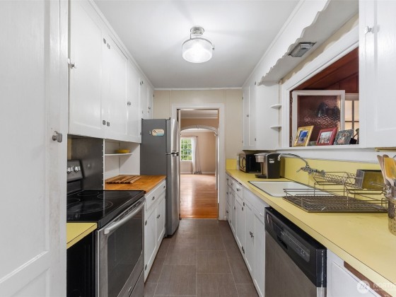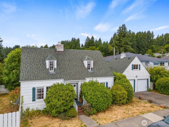 Charming 1930s Cape Cod in the heart of Shelton! Character-filled 4-bdrm, 2-bath home showcases oak hardwood floors, coved ceilings, arched doorways, & paned windows. Main floor features a primary bdrm with ensuite, formal dining room, & a generous great room perfect for gathering. The galley-style kitchen includes SS appliances & farmhouse sink. Built-ins add both charm and functionality. The 4th bdrm is above the garage with its own private staircase & includes a built-in sink—ideal for a guest suite, art studio, or flex space. Gas hot water heat, 2 fireplaces, & attached garage. Outside, a private brick patio & a fully fenced yard. Home could use some updates & TLC—great opportunity to build equity while preserving its timeless appeal.