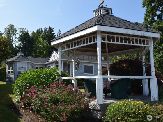 Classic Waterfront Estate with Gated Entry, Mature Landscaping, Cottage/ADU, 2 Detached Garages, Gazebo and the Main House. It has Brick Lined Driveway, Walkway, Patios and Flower Beds. The Cottage has 1 Bed, 1 Bath with Kitchen, Dining and Great Room. It is on one floor and has easy access to each room. There are 2 Detached Garages, a 1 Car and a 2 Car with Large Workshop. The Main House has Oak Hardwood Floors, Coved Ceilings, Lots of Built-ins and Leaded Windows. The Waterfront has a concrete Bulkhead with Stairs to the Beach and a Gazebo with Views of the Rich Passage, Ferry Lanes, Olympic Mountains, West Bremerton, Manette, Bainbridge Island and lots of Wildlife. Fully Fenced and a Private Setting.