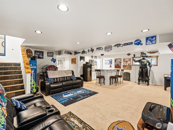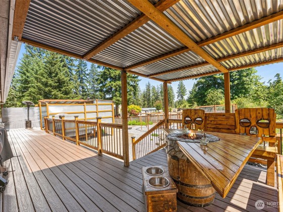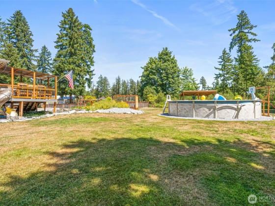 Discover the ultimate entertainer’s dream on over an acre of beautifully maintained land! This expansive home is over 3,000 sq ft with two bonus rooms, wet bar, quartz countertops, and stainless steel appliances. Enjoy your private oasis featuring a newer hot tub with 150+ jets, Bluetooth surround sound spa area with TV, above-ground pool with a solar heating system, and a pond with a waterfall. Movie nights shine with the 100" short-throw projector, large Trex deck with built-in seating, custom wood trim, and year-round lighting create a perfect hosting space. Enjoy axe throwing, RV hookups (30 & 50 amp), dual 200 amp panels, and a whole-home water system. This property offers unmatched comfort, functionality, and entertainment potential!