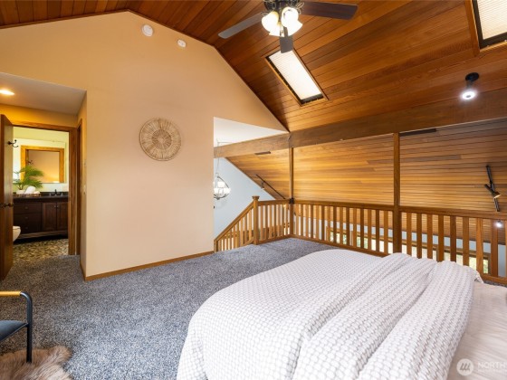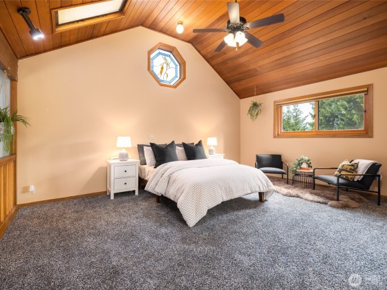 This is any outdoor enthusiast's dream home. Beautiful nature-inspired architecture with a spacious yard, garage & 3-bay shop! Incredible amount of versatility, with an expansive loft for a primary suite AND a ground floor primary suite, + 2 other bedrooms (technically a 3-bd because of septic). Second livingroom area & bd could easily be made into a private living space. Expansive yard & patio on a large lot creates a private oasis or great entertaining. This area is often considered to be "living on the forest edge" because of its easy access to Whatcom Falls Park - with pristine swimming, hiking and waterfalls, as well as the world-renowned Mtn. biking at Galbraith Mountain.