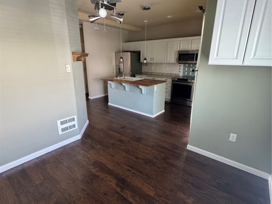 Move in ready and spacious! 1689SF with 2 generous bedrooms + loft. Great room style floorpan is light and bright with open kitchen. Kitchen boasts butcher block island w/dual basin sink, pendant lights, white cabinets w/crown and stainless appliances. Large patio/deck extends your living space! Upper floor features two bedrooms with/walk in closets and large loft area, 2 full baths and laundry! Tandem 2-car garage w/workshop space!
