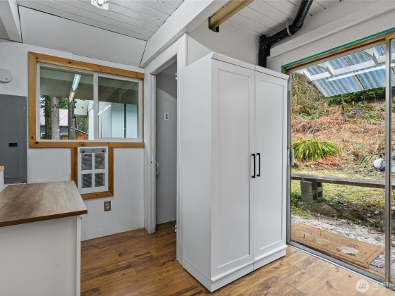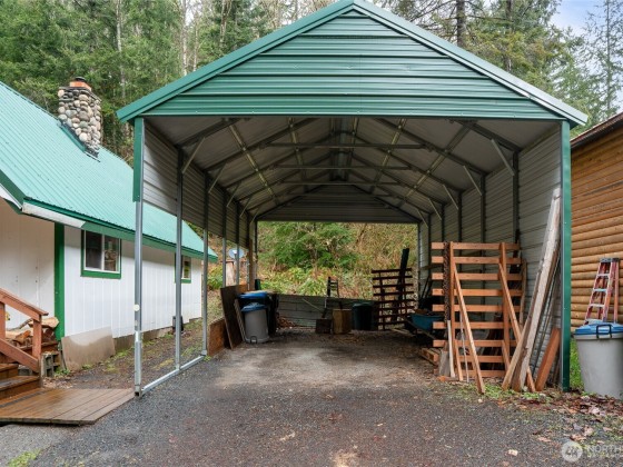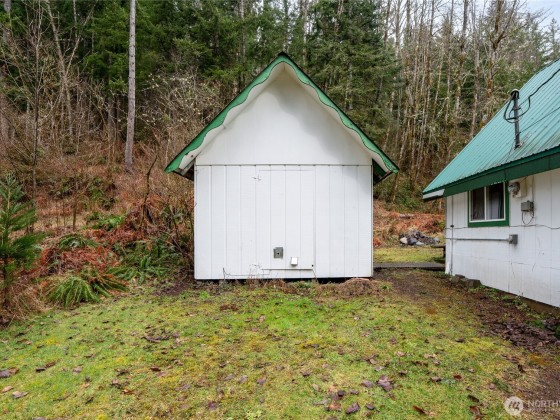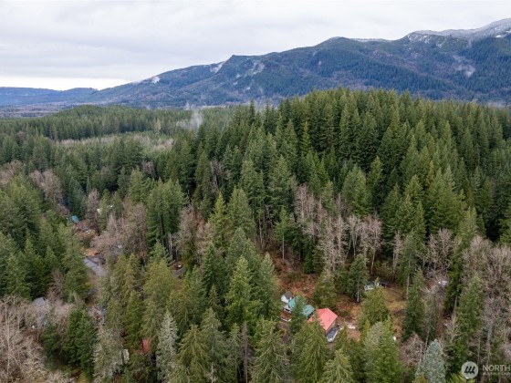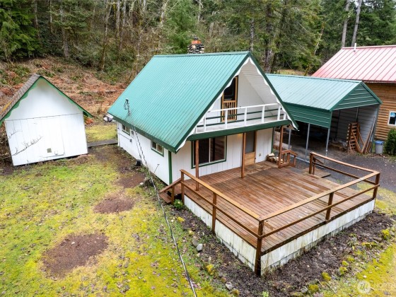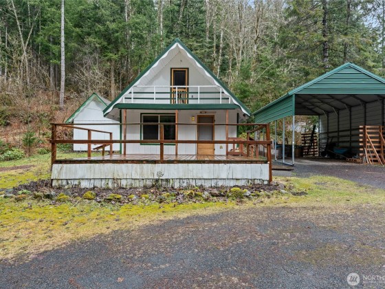 Welcome home to the beloved paradise estates community. This Cabin features 720sqft of living space, 1 bedroom and ½ bath upstairs along with a powder room on the main floor. Upgrades to cabin included new windows, stainless steel appliances, hot water heater, upstairs plumbing, electrical panel, fireplace insert, chimney case replaced with double wall pipe and upgraded stonework all work was completed within the last 3 years. This Home is situated on .40 acres and backs up to private land and Tahoma state forest land. Exterior of the home features a metal roof, large deck and upper balcony to enjoy the surrounding views. Covered carport will stay and outbuilding has a generator hookup and washer and dryer.