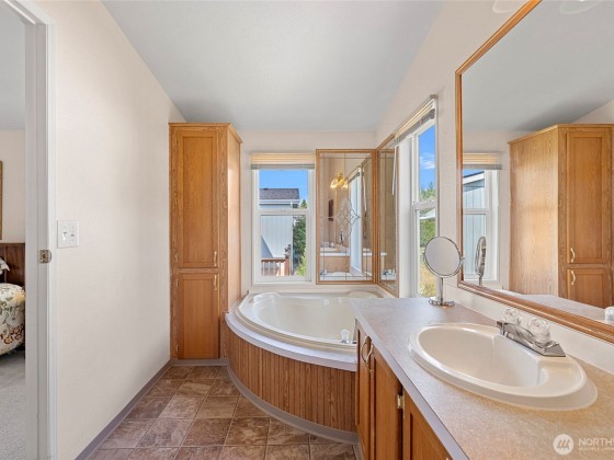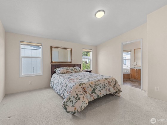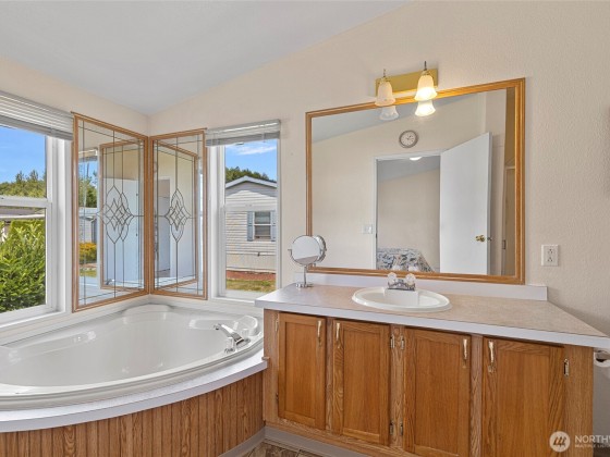 Welcome to Emerald Hills Estate, a beautiful yet affordable community of manufactured homes exclusive to those 55+ seeking fine retirement living. EHE offers all conveniences of the city w/the tranquil charm of rural Marysville. Located 5 minutes off of I5, a 20-minute drive to Everett & close to the Factory Outlet Mall, golfing & fields of strawberries. Easy access to local hospitals & medical services, Costco, Fred Meyer, banks, & shopping. Inside find a spacious home w/bright & open spaces. The primary bedroom boasts a huge closet & ensuite w/ soaking garden tub & walk in shower. The fully equipped kitchen has a breakfast nook, the perfect place to enjoy your morning coffee. Keep cool this summer w/ductless AC unit. You will love it!