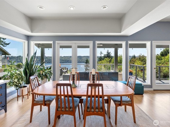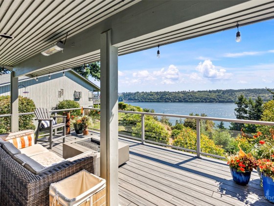 Perched above the breathtaking Tacoma Narrows, this 2990 sq ft condo blends modern elegance with timeless 70s character. Thoughtfully upgraded over the years, it offers two spacious living areas, an efficient updated kitchen, and two primary suites—including a top-floor retreat that feels like a resort. Enjoy panoramic views of the water and Mt Rainier from three decks, perfect for entertaining or relaxing (without yardwork!). Ideally situated for quick access to Tacoma, Gig Harbor, and all the amenities you need, yet tucked within a quiet community with mature trees, a pool, and a clubhouse. Generous layout, stunning scenery, and low-maintenance living—Pacific Northwest at its finest!