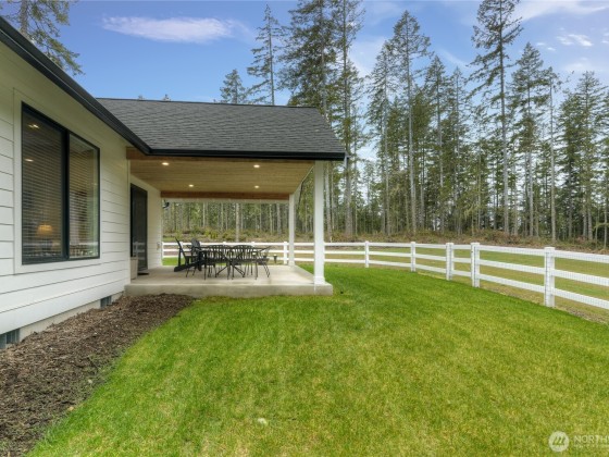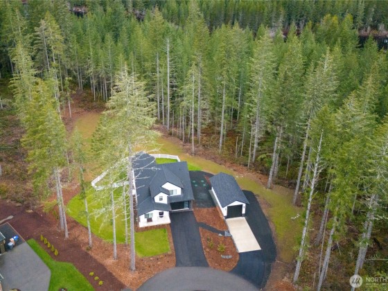 This gated community gem features rare main floor primary suite, 16' x 32' insulated RV/boat garage, covered patio, chef's kitchen with large leathered-granite island, upgraded laundry room and closets, dog-friendly fenced yard situated on two acres at end of private road cul de sac, with a community lakefront parcel on Clear Lake. Equipped with generator transfer panel, irrigated yard for easy care, and just minutes from shopping, medical services, restaurants and downtown Shelton. A must-see.