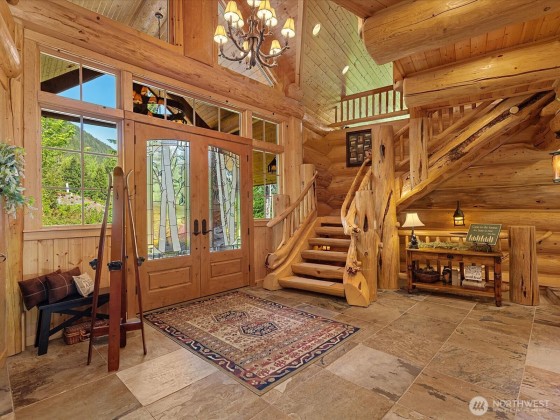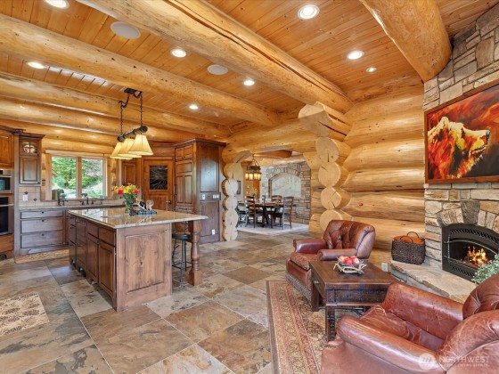 One of a kind masterpiece in an exclusive gated sanctuary awaits. An extraordinary blend of luxury and nature, this 5,520 sqft custom log estate on 7.33 acres rests within the prestigious gated community of Uplands Reserve. Breathtaking views of Mt Si from nearly every room. Exquisitely crafted with hand selected timber, one of a kind glasswork, and custom fixtures throughout handmade by local artisans. Grand open spaces, soaring ceilings, and walls of glass invite the outdoors in while luxurious amenities including a private movie theatre, wine cellar, chefs kitchen, & 5 fireplaces cater to the most luxurious lifestyle. The matching 1,600 sqft shop offers endless possibilities for collectors, creatives, or car enthusiasts. ADU Potential.