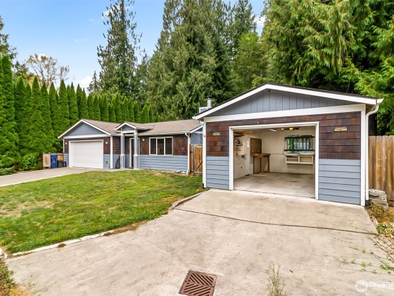 Welcome to your private oasis! This well-maintained single-owner rambler offers peaceful country living at its finest. Nestled against a beautiful, wooded backdrop with the Stillaguamish River just off in the distance, you’ll enjoy tranquil mornings on the deck listening to the soothing sounds of nature. The property features an additional detached garage perfect for car enthusiasts, hobbyists, or extra storage. Whether you're looking for a quiet retreat or space to tinker and create, this home has it all. Don't miss your chance to own this serene slice of the countryside.