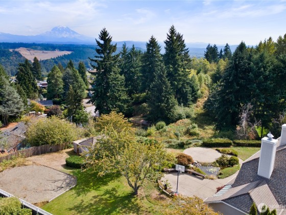 OPPORTUNITY ALERT! Wonderful, light-filled, truly grand home with stunning MTN and valley views on a shy acre in Sunrise View Estates. Beautiful grounds, mature landscaping, concrete edging, circular drive, patios, sparkling pond w/waterfall, sprinkler system front and back, 3-car garage, separate workshop and storage. Huge bonus room on main with its own private entrance, use your imagination! Office with French doors, oak hardwoods, big kitchen w/step-down great room, all appliances stay, spacious dining room. Upstairs: large bedrooms, laundry, primary suite w/fireplace, huge bath, walk-in closets. 50-year PABCO roof, Trane furnace w/heat pump, great storage. Home needs cosmetic updates, the potential is enormous, don’t miss this one!