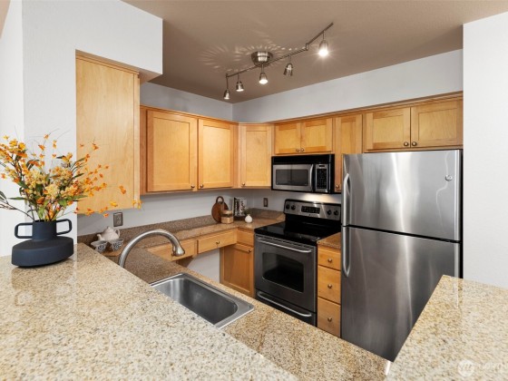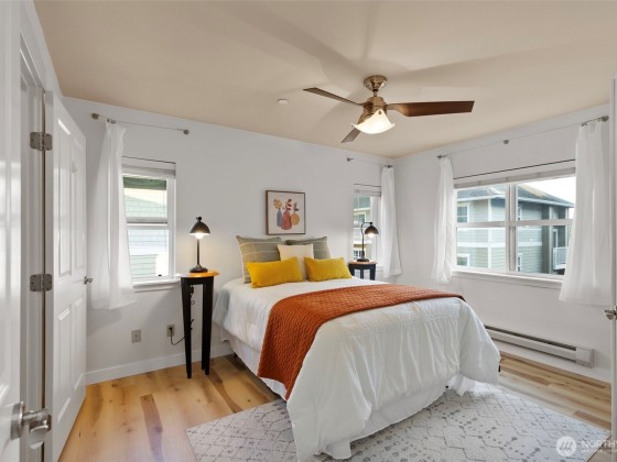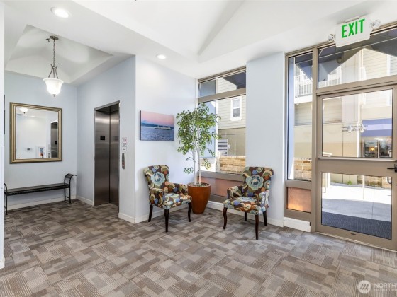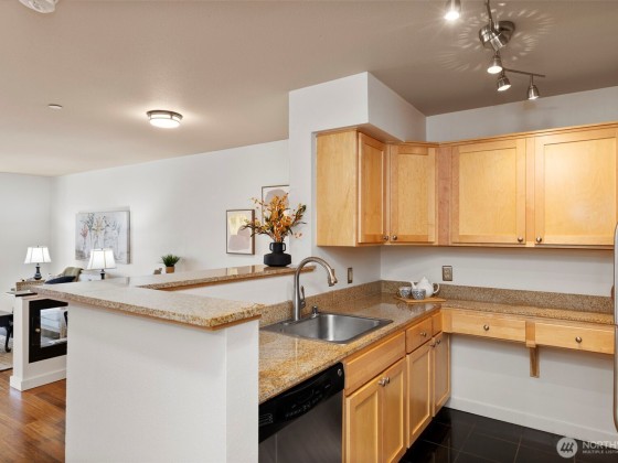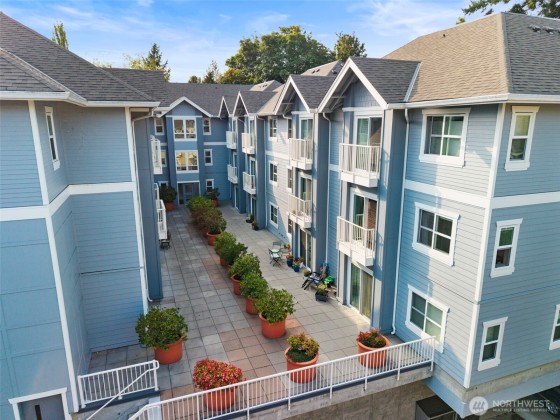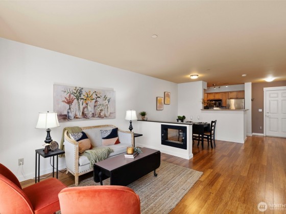 3rd floor end-unit condo in the heart of Bainbridge Island! This light-filled 1BR/1BA, 725 sq ft home shares only one wall and features bamboo flooring throughout the main living areas, granite kitchen counters, and a cozy double-sided fireplace. The open-concept layout connects living, dining, and kitchen spaces with large windows that invite in natural light. The bedroom features updated LVP flooring 3 windows & a large closet. Secure entry, elevator access, pet-friendly rules, and dedicated garage parking add convenience. Located just minutes from dining, shopping, transit, and the ferry to Seattle. Plus, a nearby trail leads to 22-acre Sakai Park—home to pickleball courts, wide open spaces, and Pia the island’s beloved troll sculpture.