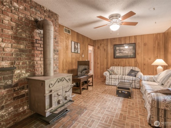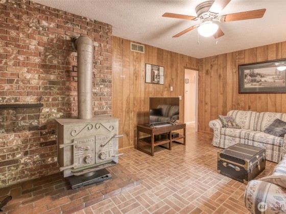 Central park one level 3 bedroom 1 3/4 home located on a private dead end street with extra front lot included. The living room has a gas insert and the cozy family room has a wood stove. You'll love all of the extra closets including a large walk in pantry & walk in primary closet. Oversized double garage with a corner workshop and utility sink. This home is clean and ready for you to move in. Architectural plans will be left for the new home owner. Home shown by appointment only. The home has a mini split heat pump. The main unit cools and heats the lliving room, dining room and the kitchen. The split unit cools and heats the 3 bedrooms, and the den from the ceiling vents.