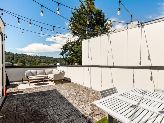 Welcome to this stylish 2-bedroom, 2-bathroom Modern Rowhome perfectly located in the heart of South Seattle—just minutes from West Seattle, Georgetown, Downtown, Sea-Tac Airport and Freeways. Across from a park, this home offers both privacy and convenience. Step inside to find a bright, open layout with oversized windows, custom window coverings & abundant natural light. The open kitchen features a gas range & all appliances included, while mini-split systems provide efficient heating and cooling year-round. Enjoy sweeping sunset & city views from your private rooftop deck, perfect for relaxing or entertaining. A Private 1-car Attached Garage w/ extra storage space & ample street parking makes city living easy. No HOA + Pre-Inspected!