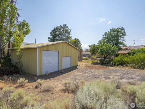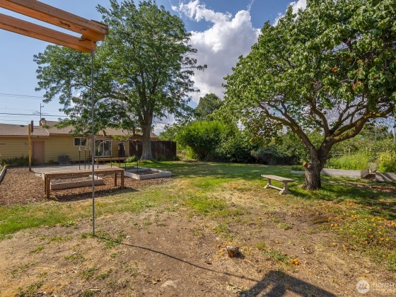 Spacious lot that is a gardeners dream. 3 bedroom 1.5 bath home has UGS, fenced, garden boxes, and attached garage plus a shop. This 1 story home with a basement has a fireplace in the living room, hardwood floors, updated bathroom. Primary suite has a 1/2 bath and doors to the back deck with a built in hot tub. The basement is finished log cabin style and would be a great secondary living room, bedroom (add an egress window), office, etc. 768 square foot detached shop, partial concrete flooring for work area, dirt/rock floor in the garage bays, 2 doors and lots of extra parking and convenient location off of Nat. Wa Way. New heat pump last year and a great location, charming house!