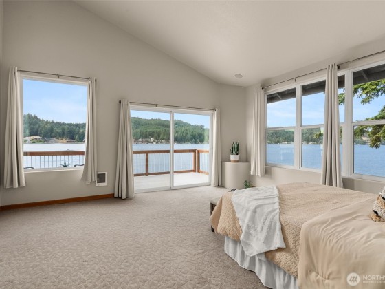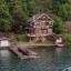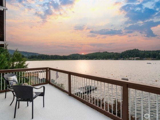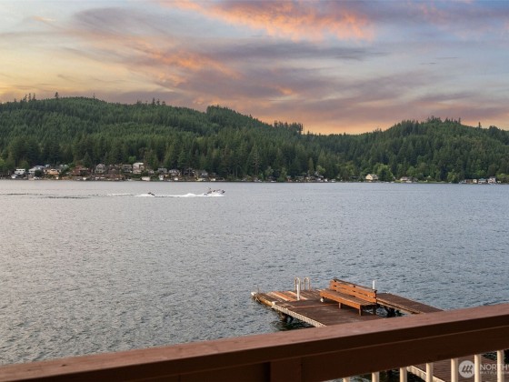 An exceptional Summit Lake home with 100ft low bank waterfront & unbeatable western exposure—FULL day summer sun & stunning year-round sunsets. Outdoor amenities are unrivaled w/ 3 docks & 2 BOATHOUSES, both w/automatic track systems. The Great Room features warm pine floors, natural wood trim & 10' ceilings. The spacious eat-in kitchen includes stainless steel appliances & ample storage. The 3rd floor vaulted primary suite features a spacious en-suite, walk-in closet, an office nook & lakeview balcony. The lower level offers 2 add'l BRs, a large full bath, & seamless lake access. Fully fenced with a massive side deck —perfect outdoor entertaining. Make this extraordinary waterfront retreat your forever getaway.