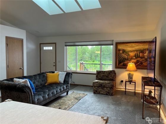 New construction 2023. 5.4 Acres with house in a sunny cleared area. Westerly view of Pine Trees and sunset. Very private 2.5 Acres behind house with deer and wildlife. Stainless steel appliances / warranties.5 minutes to stores, 10 minutes to Bay Street beach approach. 413 square feet of deck, covered porch off dining room. Nice lawn and firepit area. Garage 2 story room for storage. Vaulted ceilings, skylights in Great Room.