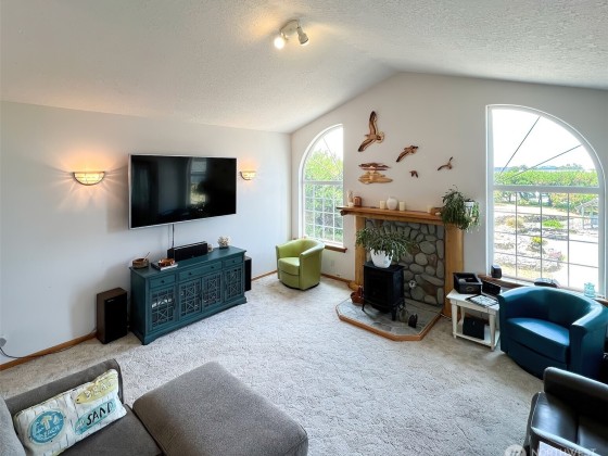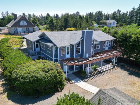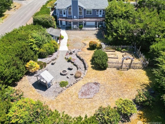 Tucked behind a lush hedge on a wide corner lot in Surfside, this 2,295 sq ft beach retreat is equal parts peaceful and private. The 2-story layout offers a light-filled great room with vaulted ceilings, a cozy fireplace, and a wall of arched windows with peak-a-boo ocean views. With an office & 2 bedrooms upstairs include a spacious primary suite with a deck access. Downstairs? A finished bonus level with flex space, large family room with a propane fireplace and exterior entrance. Don't miss the separate woodworking shop w/ roll up door. Outside, 2 landscaped lots unfold like your own park—firepit, fenced garden beds, and a storybook shed included. Roomy, ready, and wrapped in evergreens—this is your hidden oasis at the edge of the sea.