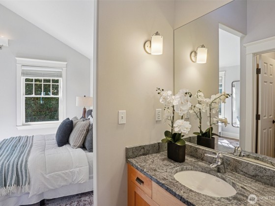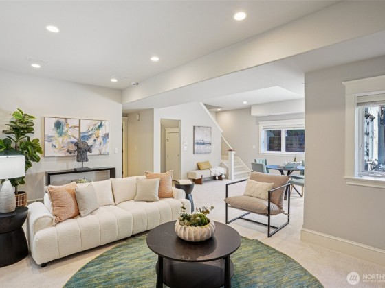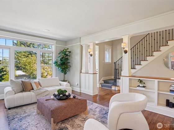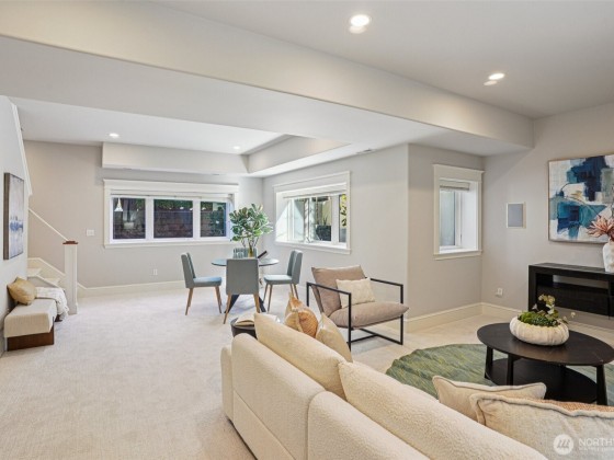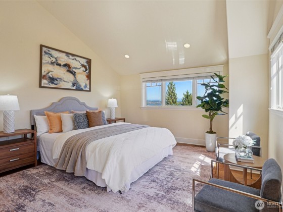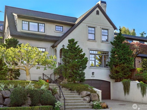 Elegant, modern Tudor located on quiet, dead end street with picturesque views of the lake from the main and upper floors. The main floor features a formal living room, a light filled family room that opens to an updated kitchen, plus an versatile den/office and half bath. Upstairs you'll find views of the lake from every east facing room, a large primary bedroom with vaulted ceilings and two additional bedrooms with their own Jack & Jill bathroom. The freshly painted and carpeted lower level has high ceilings, a huge multi-purpose room + bedroom and full bath. Located within the boundaries of the coveted Laurelhurst Beach Club! Just 5 minutes from U-Village, UW, Children's Hospital and light rail.
