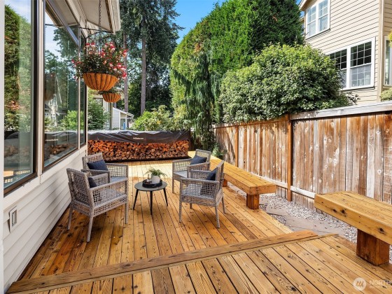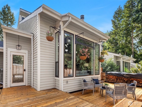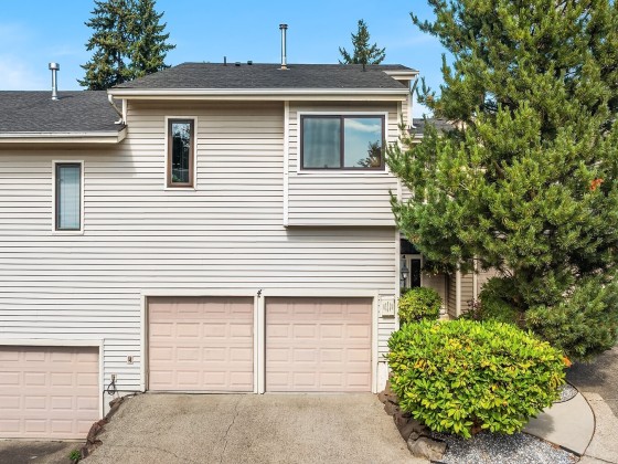 Ideally located townhouse minutes from DT Bellevue. Spacious & sun-filled living w/ vaulted ceilings, soaring windows & luxury updates. Fully remodeled 2 bed 2.5 bath combining designer finishes with timeless comfort. The bathrooms impress with style & quality. Thoughtful custom lighting enhances throughout. Open living area flows to a private deck ideal for relaxing or entertaining. Kitchen shines with stainless appliances, stone counters & elegant design for cooking or hosting. Upstairs, the vaulted primary suite offers style & space, plus charming laundry closet w/ sink. Extras include 2-car garage & low HOA dues. Move-in ready with no detail spared. Easy access to I-90 & the new South Bellevue Light Rail Station.
