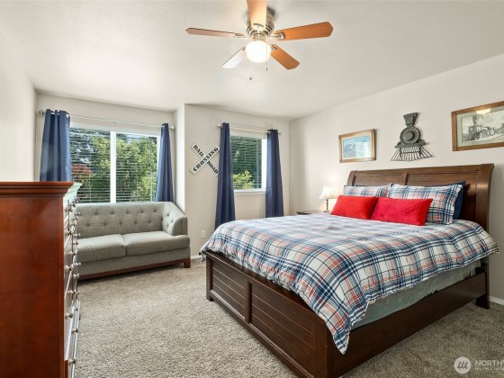 Rare opportunity to be the 2nd owner of this well-loved home in a quiet cul-de-sac location. Spacious 3197+/- offers 5 bd, 2.75 ba versatile layout perfect for both everyday living & entertaining. Soaring vaulted ceilings create a grand first impression in the formal living room while a cozy gas fireplace adds warmth & charm. Enjoy a formal dining rm or casual eating connected to the large open kitchen. Convenient main-level office/bedroom off the expansive family room. Luxurious primary suite features a 2nd fireplace, ensuite bath & generous closet space, 3 additional bedrooms, media room & home office space. Large, fully fenced backyard offers room to relax, play & garden. Unbeatable location close to shopping, I-5, & Tumwater Schools.