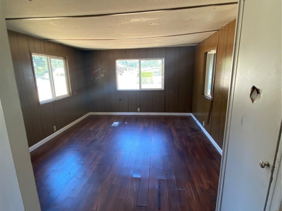 This is it! A single-wide manufactured home on its own land! This property boasts a nice size living room, kitchen with an eating space and a cozy kitchen. There are 2 bedrooms with the primary bedroom in back of the home. There is a single car garage and an extra-large shop area! The property is fully fenced with a detached shed for additional storage. Be the king/queen of this single wide manufactured home with polyester curtains and a wood front porch! The possibilities are endless! Renovate, remodel, replace or live in the existing home while planning for the future!