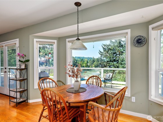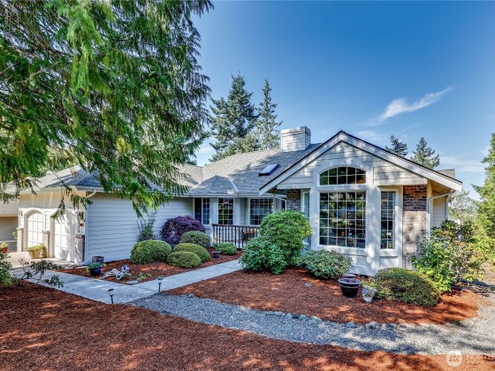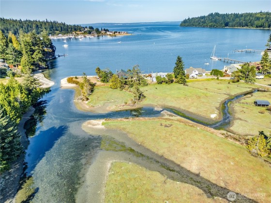 Quintessential Pacific Northwest Living, where water and wildlife take center stage! Perched above an active estuary, & Ludlow Bay you'll see bald eagles, blue herons, and regular boat activity. This spacious home offers open & inviting gathering spaces. Main-level primary, with ensuite bath & walk-in closet. 2 bedrooms (one used as an office). Oak hardwood floors, electric fireplace insert, Forced air heating & cooling. Large windows and a thoughtful layout bring the outdoors in for daily comfort. Neutral finishes provide a canvas for your style. Lower level offers comfortable accomodations w/ kitchenette, 2 bedrooms, Office, full bath, & massive storage! Minutes to the marina, golf, Bay Club, parks, and trails. See this One Today!