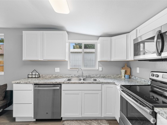 Move-in ready and fully refreshed! This beautifully remodeled 2-bed, 1-bath home sits on nearly a third of an acre, offering space, comfort, and style. Step inside to find new LVT flooring, plush carpeted bedrooms, fresh paint, and a stunning brand-new kitchen with stainless steel appliances. Outside, enjoy the cedar-fenced yard perfect for pets or a garden, a 2-car carport, new sidewalks, and plenty of parking for guests. With a roomy mudroom/utility space and modern updates throughout, this home truly checks all the boxes. The generous .29-acre lot provides plenty of room to add a shop or ADU! Located near schools, shopping, and commuting routes, this home offers the best of both worlds—quiet privacy with easy access to amenities.