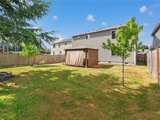 Beautifully updated amazing Frederickson 2-Story Home, with Brand New Roof : 7 bedroom home is move-in ready, with a brand new roof! All appliances stay, including a new washer and dryer. Beautiful new kitchen boasts stainless appliances & plenty of room to put your chef skills to the test! Master suite is complete w/a full ensuite bath that includes a large soaking tub & huge walk-in closet. There's also a Large Rec Room where you can put your creativity to work. The laundry room is on the second floor where there are 5 bedrooms, and 2 bedrooms on the main floor. Fully fenced backyard provides ample room for your summer BBQs with a very large, luxurious Gazebo - ideal for entertaining. Close to JBLM, local schools, shopping.