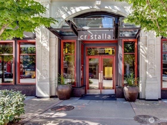 A pristine Residence where soaring walls of windows frame tranquil City views, a short stroll from the Waterfront, shopping, South Lake Union, and the epicurean paradise of Pike Place Market. A unique floor plan that includes a full bathroom, powder room, full private bedroom and a den. Hardwood floors, custom tile. 24 hour concierge, gym, sauna, Jacuzzi, steam room, and a rooftop lounge with a special corner for pets! Huge storage unit, great parking. Cristalla is the best in class of downtown Residential towers. With a healthy HOA budget and strong long-term management, and the best location in the city. The must see residential address.