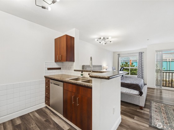 Welcome to a beautiful Top Floor studio on the quiet backside at Tobira Condominiums overlooking private community courtyard. Featuring new wide plank vinyl floors, granite countertops, private deck, large walk-in closet + storage unit, full bathroom, in-unit washer/dyer & a deeded parking space in the secure garage. Boasting a Walk Score of 98 & Transit Score of 100, you’ll appreciate the secure entry, convenient location w/easy access to waterfront, downtown, dining, shopping, transit, light rail, sports venues, I-5, I-90, Cap Hill & more! Tobira is pet friendly, no rental cap & has Amazon Hub in lobby for secure package deliveries. Enjoy exceptional value in the heart of the city!
