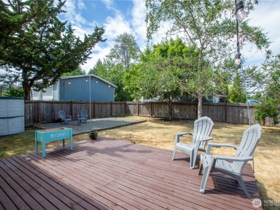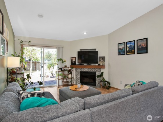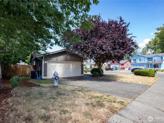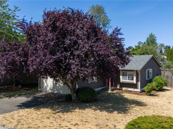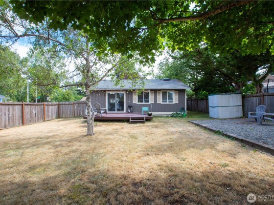 NEW PRICE! Warm and inviting one-level Rambler on a spacious corner lot! Just minutes from I-5, shopping, and dining, this 3 bed, 2 bath gem features an open kitchen with new quartz countertops, new stainless-steel appliances, and fresh interior paint. The vaulted great room boasts a gas fireplace with stylish tile accents and sliding glass door to the private backyard. Access the spacious wooden deck right from the living area and enjoy the fully fenced backyard with garden space, in-ground firepit, as well as a swinging double gate—perfect for boat or RV parking. Newer roof, 2-car garage, No HOA, and great curb appeal. Move-in ready with comfort, style, and convenience!