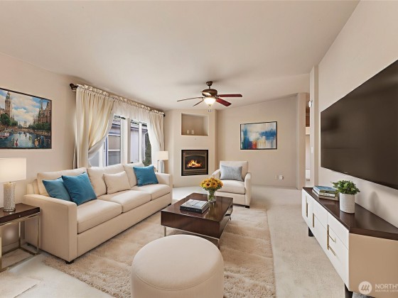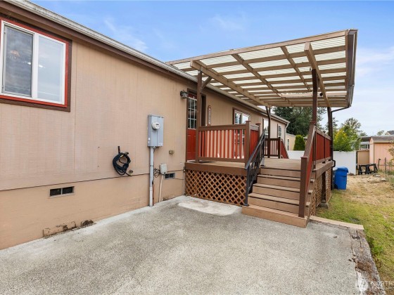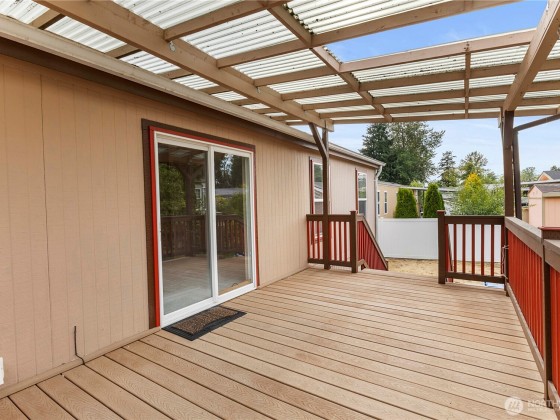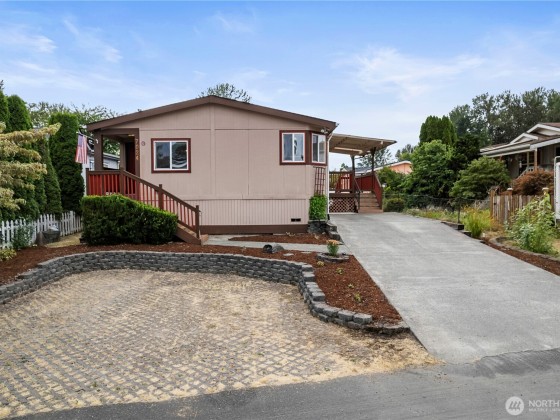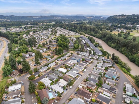 Welcome to this beautifully updated 2001 manufactured home in a vibrant 55+ community! Featuring brand new carpet, stylish modern lighting, ceiling fans, and a cozy propane fireplace, this 2-bed, 2-bath gem offers high ceilings and warm earth-tone finishes. The spacious kitchen and dining area boast abundant cabinets and natural light. Enjoy outdoor living on the newer covered Trex deck and level, partially fenced backyard. RV parking and room for 3–4 vehicles! All appliances stay. Community perks include a sparkling in ground pool, clubhouse, and game room. It is located minutes to Sumner Town Center and all major transit routes. This is a must see with lots of comfort and convenience. Dont delay before its gone.