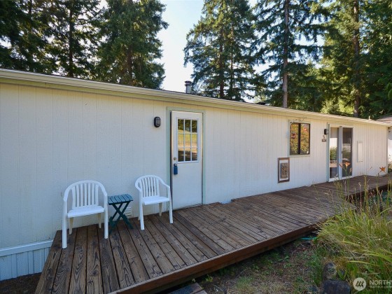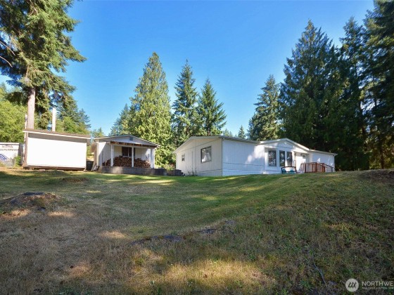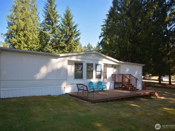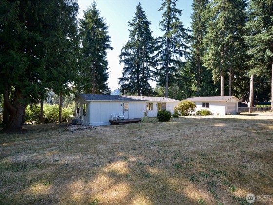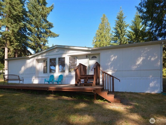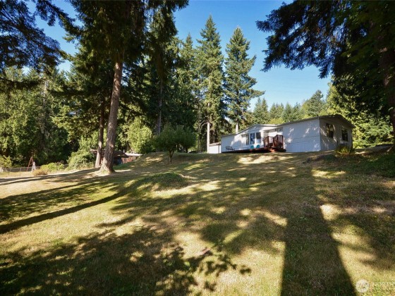Grab your fishing pole! Come and see this gorgeous comfortable 3 bed 2 Ba Home located in Cedarwood at Lake Mclntosh community. Home is nestled in the center of 1/2 acre pristine land bordered by majestic Douglas firs. Open kitchen/dining/living room floor plan, filled with natural light from large windows. Heat pump AC to keep you cool this summer! Cozy woodstove for those chilly WA nights. Large deck with view over to lake. Large shop/garage/wood storage. Community offers lake use, and park with covered picnic area. Let the fun begin! As gorgeous as this home is, there will be no FHA financing due to the home being moved twice.