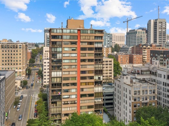 Rarely available water-view condo at the base of First Hill, in sought-after building. Just steps from Downtown, Capitol Hill, world-class dining, shopping, cultural attractions & world-class medical facilities. Expansive windows frame sweeping views of Puget Sound, Lake Union & the sparkling city skyline, filling the home with abundant natural light throughout the day. Spacious 2-bedroom layout features engineered hardwood floors, stylish tile baths, generous closets, an inviting open design perfect for entertaining or unwinding. Secure parking, a fitness center, game and activity rooms, & a large community deck with BBQs add to the lifestyle. In a solid, well-managed building, this home is a daily retreat—don’t miss it!
