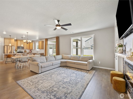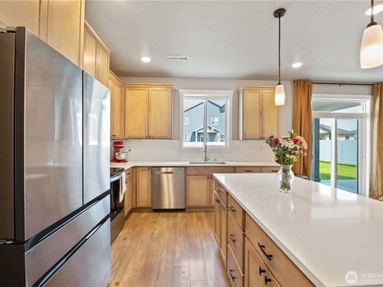 Welcome to this 4 bedroom home with an office, built in 2023 and designed with peaceful living in mind. With 2,269 sq ft, there’s room for everyone to spread out and feel at home. The main floor features 9 foot ceilings and a charming living room complete with built-ins around the fireplace- perfect for movie nights or game days. The kitchen shines with upgraded quartz countertops, giving you plenty of space for cooking, homework and gatherings. Step outside to the extended back patio and fully fenced yard, ready for summer barbecues, playtime or simply relaxing. A 3 car garage offers extra space for storage, bikes, and hobbies. This home brings together comfort, function and thoughtful details- ready for your next chapter.