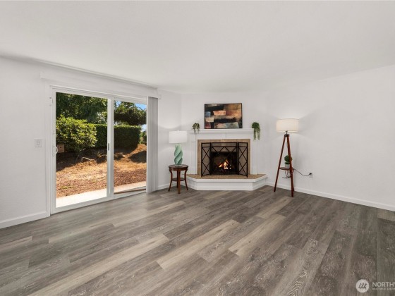 Experience all this tastefully refreshed 2 bed 1 bath ground floor condominium in convenient location has to offer. Freshly updated bathroom, kitchen, flooring and light fixtures! Popcorn ceilings were just professionally abated! This turnkey unit offers 2 spacious bedrooms, functional updated bathroom. Optimal layout in the open concept living room with fireplace and large windows/slider letting in lots of natural light. All appliances included with in unit washer and dryer. Great location for commuters. Check it out today!