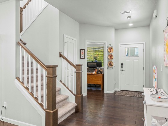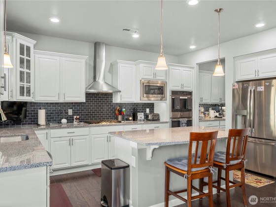 Everson plan in Inspiration Ridge at Tehaleh offers 2933 sq ft of thoughtfully designed living space. Enter through a grand foyer that leads past a private den and an elegant formal dining room, perfect for entertaining and gatherings. The gourmet kitchen is a chef’s dream, featuring slab granite countertops, Frigidaire stainless steel appliances, hardwood flooring, and a spacious island that opens to a bright eating nook and an inviting great room. The primary bedroom provides a tranquil escape, complemented by three additional bedrooms and a flexible bonus room. Enjoy living in a community that makes every day feel like you're on vacation, with parks and walking trails throughout this amazing community. Sumner-Bonney Lake SD.