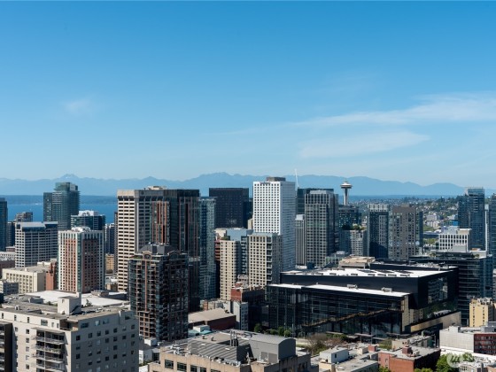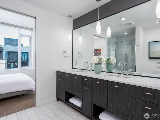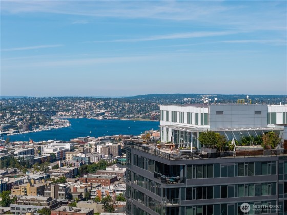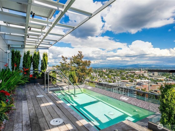 Unique and Modern, this pristine home at Luma offers urban sophistication with nature-filled ambiance. This bright corner one-bedroom home features bright, open living spaces and high-end finishes with walls of windows to provide serene views of lush, mature trees, creating a peaceful sanctuary in the heart of the city. The building boasts top-tier amenities, including a fitness center, stunning rooftop deck and pool, expansive gym, and a resident lounge rooftop with panoramic city and Puget Sound vistas, and secure parking. Enjoy concierge services and easy access to local cultural hotspots, dining, and parks. A perfect blend of city convenience and natural tranquility.