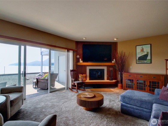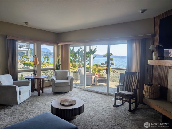 Take in stunning panoramic views of Burrows Bay, the Olympic Mountains, and surrounding islands from this quality low-bank waterfront condo. A ground floor unit for easy access with a southwest-facing orientation, the home is filled with natural light year-round. The layout features a bright living room with a cozy fireplace and access to a private patio—perfect for relaxing or entertaining. Ideal as a summer retreat or a year-round residence, the home offers a spacious great room, dining area, and well-appointed kitchen. Includes 2 bedrooms and 1.75 baths. Enjoy easy access to Skyline Marina, Washington Park, and scenic coastal trails.