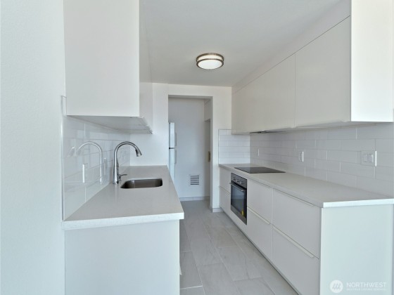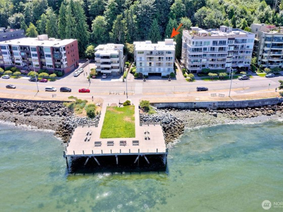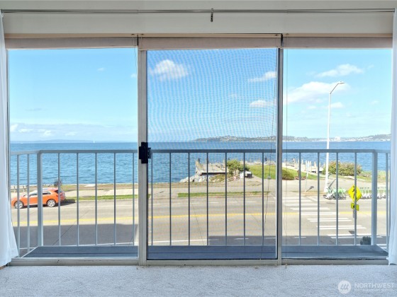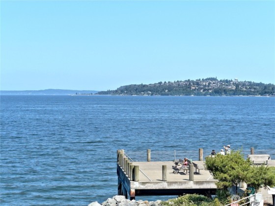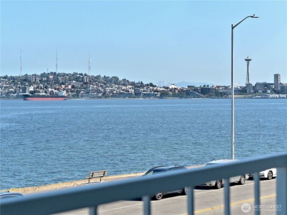 VIEW, VIEW, VIEW! Experience destination living at its finest, where sweeping vistas of Puget Sound meet the iconic Seattle skyline. Just steps away from Alki's top restaurants, sandy beaches, and the Water Taxi for a quick trip to downtown Seattle. This urban oasis boasts a fully remodeled kitchen and bath, with modern updates throughout. Additional conveniences include W/D hookups off the kitchen, basement storage and guest parking. Savor panoramic waterfront views from the open lanai, enjoy in the community gardening space, or launch your kayak right across the street.