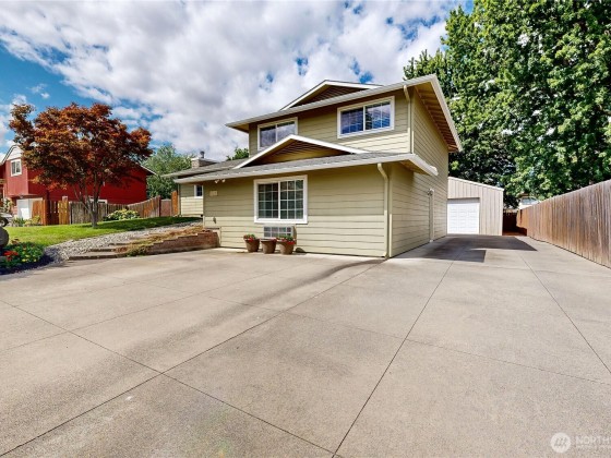 This home can very well be termed a "turn-key" home. There are many updates for maximum living and entertaining enjoyment. Enjoy space for everyone on your list...4 bedrooms, 2 1/2 bathrooms, and a lower-level family room. Beautiful kitchen with quartz counter tops, stainless steel appliances, and center island/breakfast bar. Living room has a cozy gas fireplace with stacked stone hearth. Easy care laminate flooring on main level. Out back there are 2 covered patios, and beautiful landscaping. You'll really enjoy the 20'x30' shop/garage. The exterior siding has been replaced. Wonderful curb appeal too.