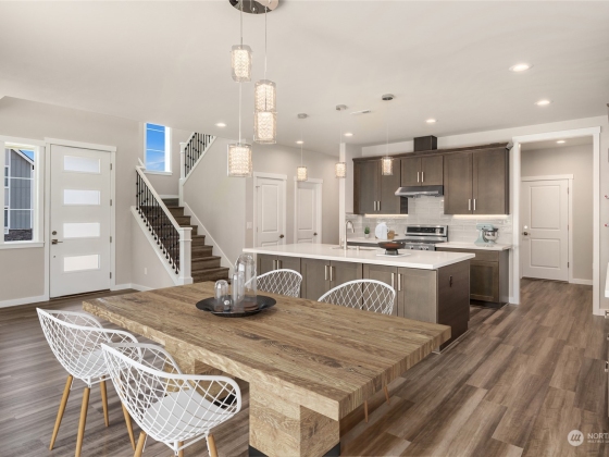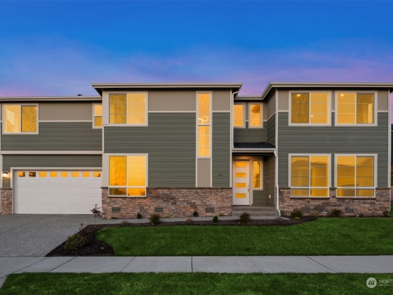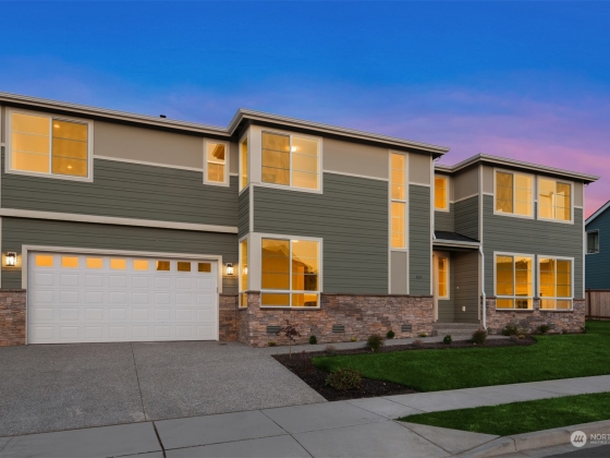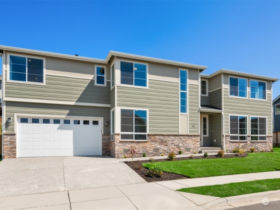 Western facing new construction in Lake Stevens! Seller paid interest rate buydown available with preferred lender. With a unique, modern design, this residence offers an open-concept layout, highlighted by oversized windows that bring in abundant natural light. The chef's kitchen is a true standout, featuring sleek quartz countertops, ideal for everyday use & entertaining. What sets this home apart is the expansive upstairs bonus RM—perfect for a media room, playroom or home office. The primary suite is a tranquil retreat w/spa-like bath, complete w/heated floors for ultimate comfort. Step outside to a spacious back patio, equipped w/gas FP, gas BBQ stub out & hot tub hookup—perfect for year-round gatherings.