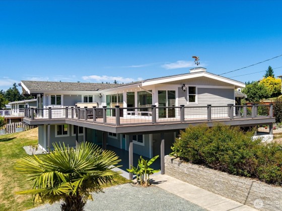 $15,000 SELLER CREDIT available for a full price offer! Welcome to The Beach House on South Whidbey with stunning views of Useless Bay! Just 2 houses from the water w/ a large community beachfront park & pool, this home has it all! Upstairs you’ll find a spacious living room & kitchen w/ eating space, custom maple cabinetry, SS appliances, & granite counters. Upstairs also includes 2 bedrooms, a bathroom, & ~800 sqft of deck space. Downstairs, enjoy more versatile living space with 2 private entrances, a 2nd kitchen with new SS appliances, & a bathroom. Bonus features include a garden-like yard and close to the community amenities: clubhouse w/ heated pool, large lawn, & direct beach access.