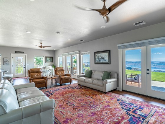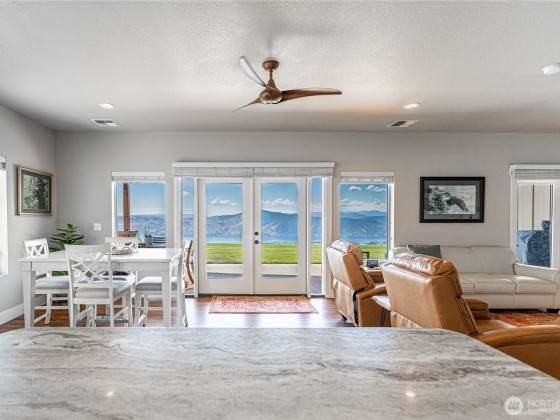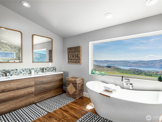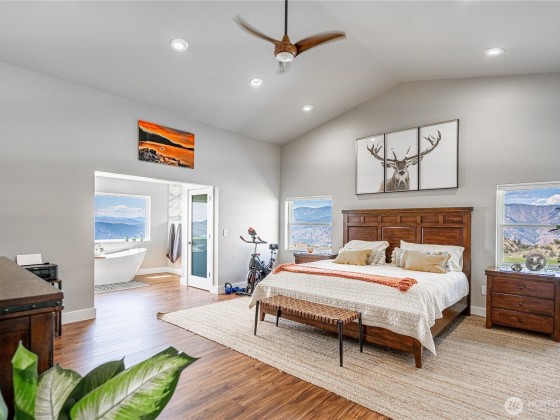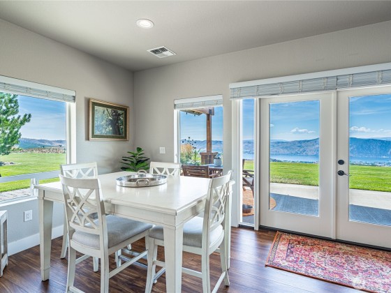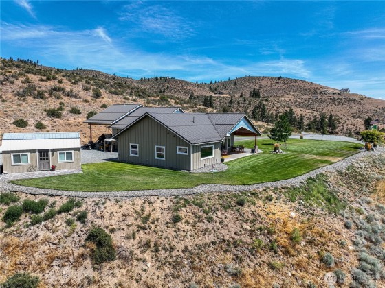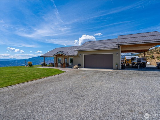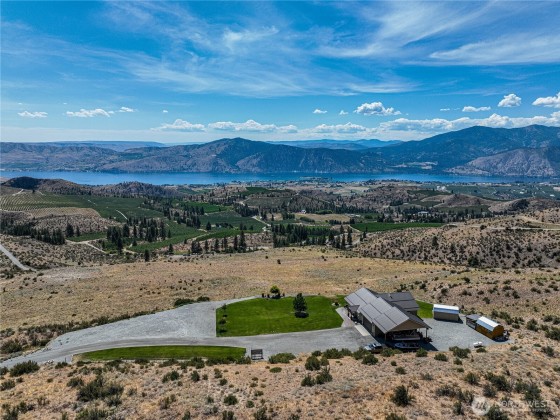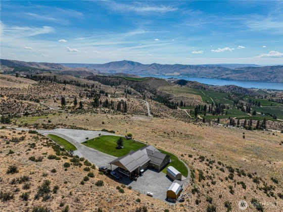 Nothing compares to this location and home overlooking the Lake Chelan Valley just north of Manson with incredible privacy and solitude. Like new one level home features two bedrooms plus a finished arts and craft studio could be a 3rd bedroom. Large primary suite with walk in closet, soaking tub and walk-in tiled shower. New LVP flooring throughout, spacious living and dining areas. An attached tandem garage and 18 x 36 carport for all your RV's. A 600 Amp service and multiple RV hookups with water and septic. The covered patio takes in the expansive views of Lake Chelan & Valley surrounded by a manicured lawn on 20 acres. Experience this captivating property for yourself for an ideal vacation or year around home and ample room for a pool.
