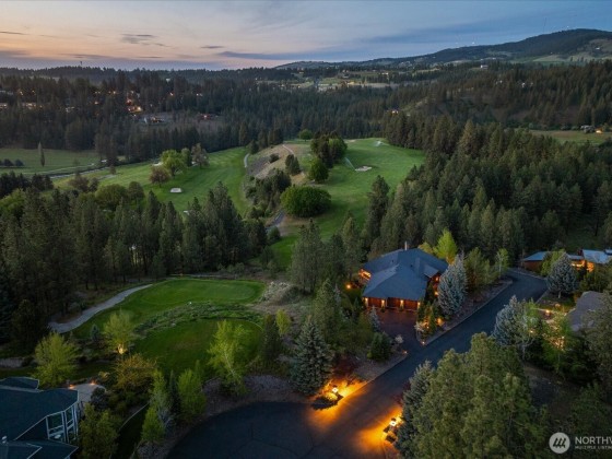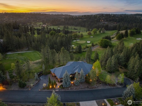 Perched above Latah Valley’s Signature Hole 5, this custom residence showcases refined craftsmanship & uninterrupted views from every room. With 4 beds, 2.5 baths & 4,590 sq ft, it offers space, serenity & distinction. The designer kitchen boasts soapstone counters, beamed ceiling, pantry & large island. A floor-to-ceiling fireplace anchors the living room, opening to a covered deck overlooking the fairway. The primary suite offers private deck access, a spa-like bath, walk-in shower & vestibule entry. Downstairs: media/game room, gym, & wet bar. The 4+ car garage (1,396 sq ft) includes storage & workshop space. Located at the Ridge at Hangman—just 15 minutes to downtown Spokane and the airport.