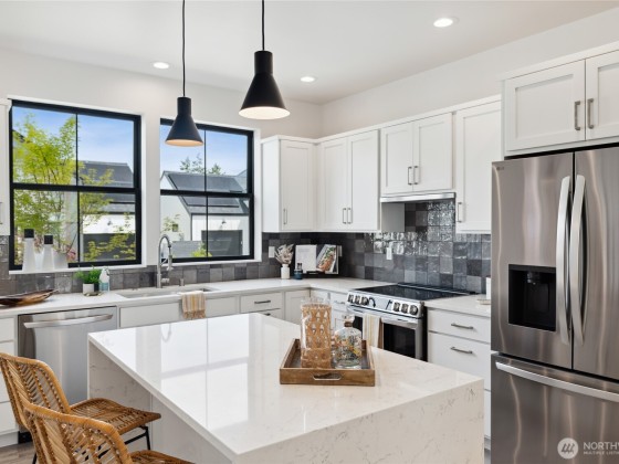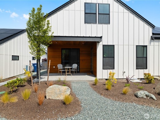 This brand new collection of NW contemporary cottage homes built by Strandberg Construction, located at The Crossings, is the perfect balance of spaces designed both for privacy and community. Poised against the lily pad covered pond with walking trails and gathering spaces throughout. Styled with modern touches, this cottage has two owner suites with elegant baths and an inviting farmhouse kitchen ready for celebration. Clear cedar detailing, solar panels, single car garage and drought resistant landscaping. Built net-zero these cottages enjoy a healthy respect for the incredible natural surroundings and will offer extremely low utility expenses and a 5k+ tax credit; enjoy the community garden space.
