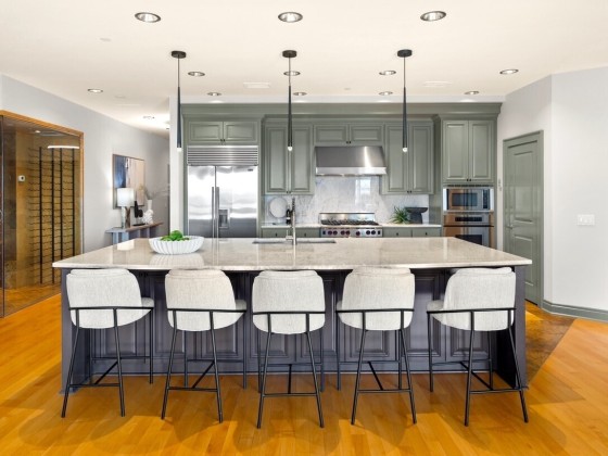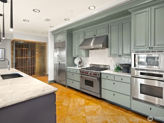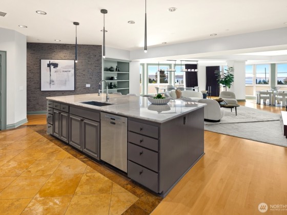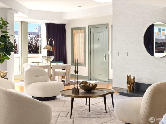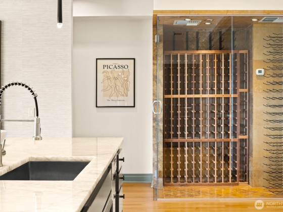 Where updated elegance meets timeless sophistication. A brand new color palette, designer wallpaper, and entrance chandelier. Step off your private elevator into softly illuminated interiors with curated finishes. The chef’s kitchen, anchored by an oversized quartzite island with premium appliances, walk-in pantry, and clever storage. Savor a vintage from the 240-bottle wine vault as city lights shimmer from your private terrace. A private guest suite with en/suite full bath and adaptable flex den are perfect for extended stays. Three garages, abundant storage, and sweeping city views complete this space—more than a view, it’s the experience of living minutes from Seattle Center, waterfront parks, and shops.NO RENTAL CAP! Motivated Seller!